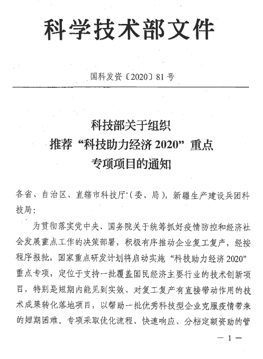 1.关于组织推荐“科技助力经济2020”重点专项项目的通知
